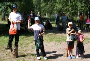 Seuraavana oli vuorossa lasten munajuoksu. Munajuoksu on laji, jossa suussa on lusikka ja lusikassa kananmuna. Munan täytyy pysyä lusikassa koko radan ajan ja nopeus on valttia. Voittajaksi itsensä taituroi Roni, toiseksi sijoittui Arttu ja pronssimitalin vei Karlo. Heti perään pidettiin aikuisten vastaava kilpailu ja munan kanssa parhaiten taituroi Heidi, seuraavaksi sijoittui Teija ja kolmanneksi Ritu. Kisan jälkeen esitettiin protesti, että voittajat olivat harjoitelleet salaa sillä molempien kisojen ykkönen tuli samasta perheestä. Protesti hylättiin kuitenkin yksimielisesti :D
